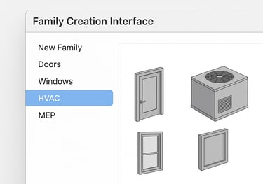 We create custom Revit families and content libraries optimized for performance, parametric flexibility, and standardized BIM usage.